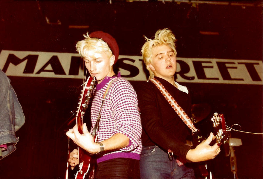 The Screaming Meemees' Michael O'Neill and Tony Drumm at Mainstreet, Queen Street, Auckland, c 1983 - Photo by Murray Cammick