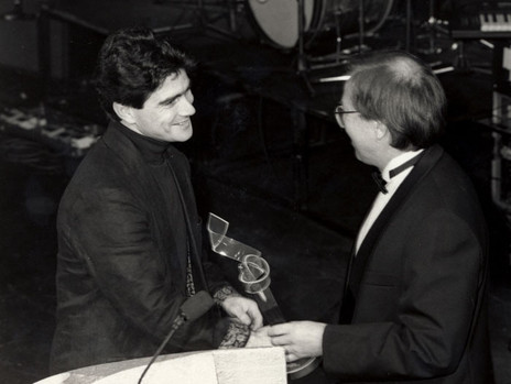 Toasting Marmalade: Nigel Stone and Rocky Douché at an awards event in 1993.