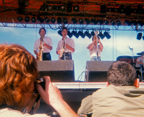 Neville Schwabe (NDTs, saxophone): “In my experience those big outdoor gigs are never as much fun to play as they should be ... it’s always a rush to get set up and get the foldback to where you can just about function ... then the set flies by and you can’t really hear the band so you end up playing kind of on autopilot, while being acutely aware there’s a big stage to fill and punters out there expecting a ‘show’. Difficult circumstances to perform at your peak really, and hats off to the bands who do it regularly. But from memory we played fine that day.”
