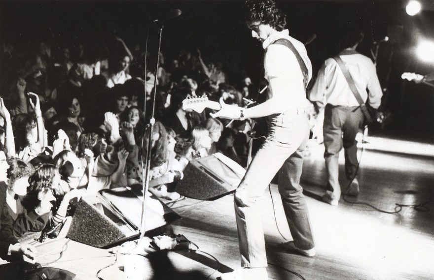 Geoff and Mike Chunn as Citizen Band play to a packed Auckland Town Hall, September 1978. - Photo by Murray Cammick