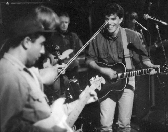 Java Jive Café country nights, 1993. Left to right, Rob Galley, Jono Lonie (obscured), Paul Walker, Glen Moffatt, Jeremy Dart. - Photo by Billy Lawry