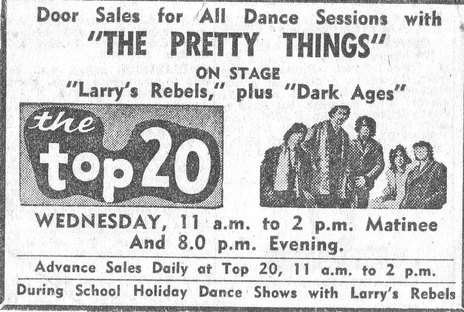 Newspaper advert for The Pretty Things shows at the Top 20, 1965 - Ian Thomson collection