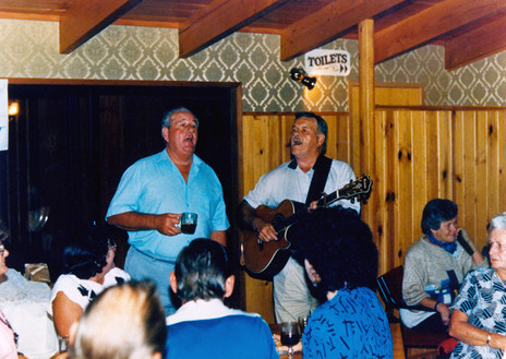 Bernie onstage with his older brother Leon, Kaikohe 1985