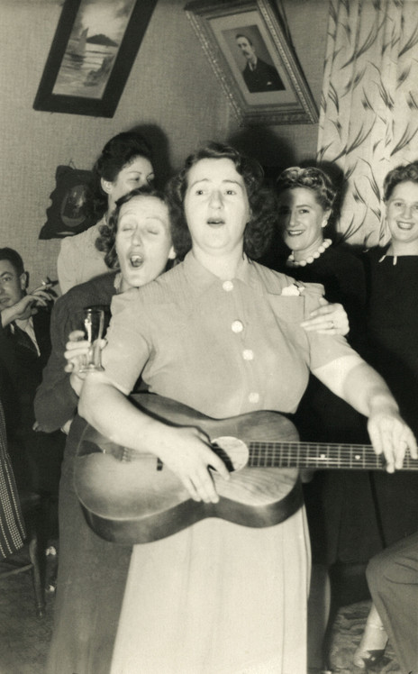 Bernie’s mother, Edith Charlotte Brown on steel guitar, Whanganui, mid-1950s