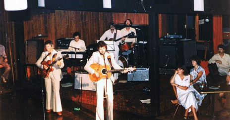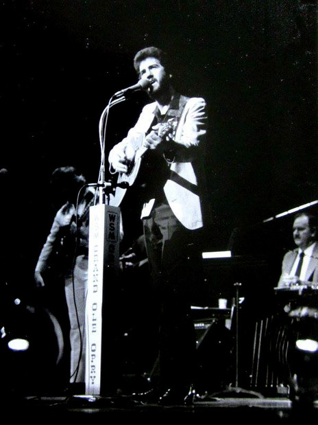 Brendan Dugan performing on the Grand Ole Opry, Nashville, in the early 1980s. Gray Bartlett is to his right.