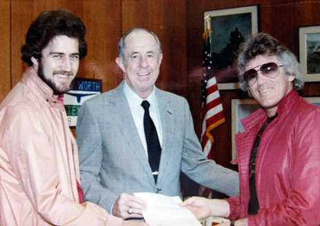 Gray Bartlett and Brendan Dugan with Fort Worth radio personality Stan Knowles in the early 1980s