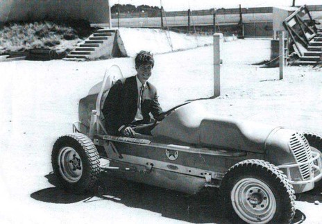 Teenaged Brendan Dugan in Laurie Millar’s midget racing car, late 1960s