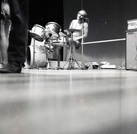 His next major role was drumming for Quincy Conserve, Malcolm Hayman’s band of jazz/groove sessioneers, for whom he wrote out-of-the-blue New Zealand classic ‘Ride The Rain’ in 1970. His ride with that band was short-lived. In mid-1971 he formed the madcap ensemble that would forever bear his name: BLERTA (Bruno Lawrence’s Electric Revelation And Travelling Apparition). This project lasted an astonishing (for Bruno) four years and consisted of an ever-evolving multi-disciplinary cast of musicians, actors, filmmakers and technicians (and assorted extended family) driving around in an old red bus, performing wherever and whenever.