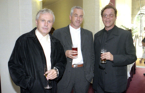 Simon Grigg with Buster Stiggs (of Suburban Reptiles and Swingers fame), at the APRA Silver Scroll in 1998