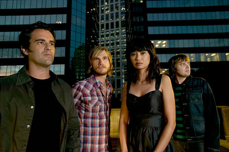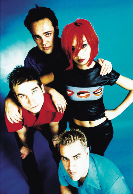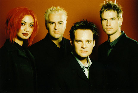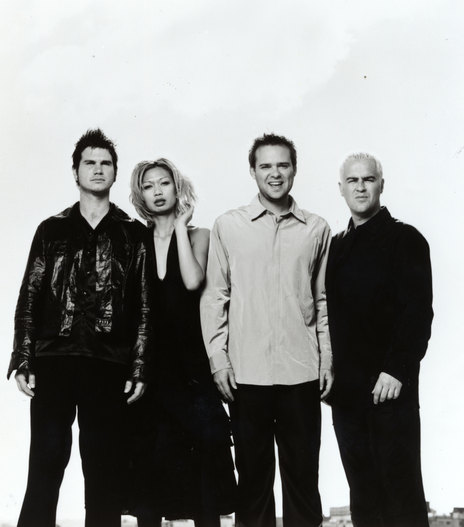 Stellar* publicity photo for the Mix album, 1999: clockwise from left Chris van de Geer, Kurt Shanks, Boh Runga and Andrew Maclaren