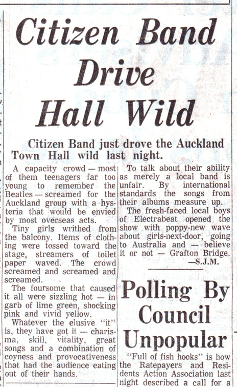 Citizen Band in a 1ZM show, recorded at Radio New Zealand's Radio Theatre in Durham Lane West, Auckland, and broadcast a couple of weeks later on Bryan Staff's show
