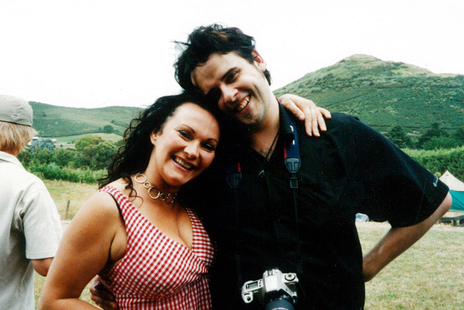 Debbie Harwood with Gary Verberne, on the road in the When The Cat's Away tour bus.