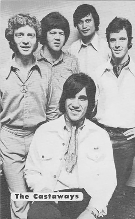 The Castaways in Sydney,1968. L to R: Doug Petrie, Doug Henderson, Len Ormsby and Lance Dixon with Frankie Stevens in front.