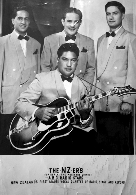 Frankie Stevens' uncle Joe Ward-Holmes with The New Zealanders (also known as The NZ-ers and The Aotearoa Quintet) in 1951. The band was the prototype for the Māori showband pehenomena.