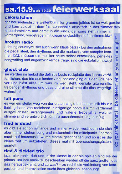 Cakekitchen and Ghost Club at the Hausmusik Festival, January 2001
