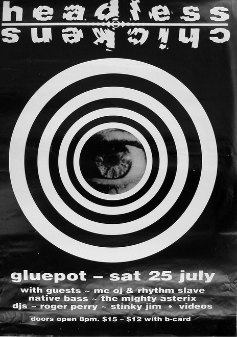 A poster for Headless Chickens' Gluepot shows, October 1992