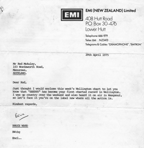 For their next single, Hot Ash recorded a rocked up version of The Four Seasons’ 1962 hit ‘Sherry’, a live favourite due to Rod’s falsetto lead vocal. The flip side was ‘Take The Time’ and Rod approached EMI to release it. For part of the subsequent South Island tour, they used substitute drummer Brendon “Zak” Harper (who had been with Rod in Summer Wine) when Gordon Joll cut his arm and the tendons to his thumb in a bizarre glazing accident.