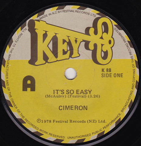 In 1978, Cimeron released the single ‘It’s So Easy’ b/w ‘Take The Time’, produced by Rob Aickin on Eldred Stebbing’s Key label. Although he would never find out, the McAuleys wrote the song about an incident involving their former Hot Ash bandmate Ritchie Pickett. “It’s so easy to be kind/ It costs you nothing/ It ain’t just a line/ It’s so easy if you try/ Truth and kindness you can’t buy.”