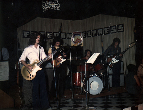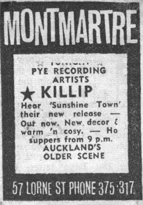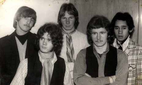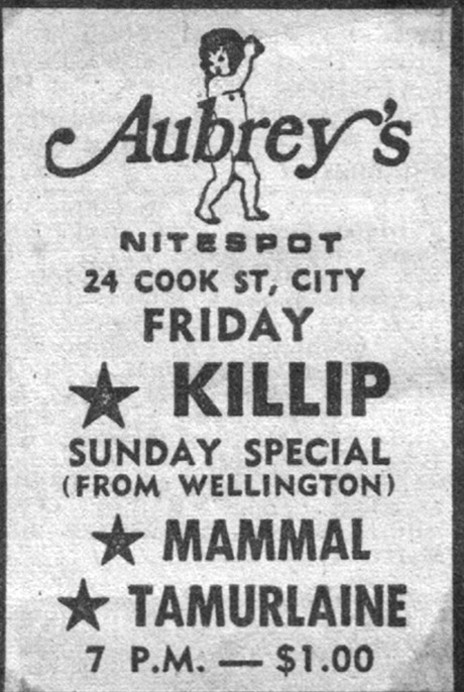 Killip at Aubreys in Auckland's Cook Street in 1971: Larry Killip, Tim Biggs, Steve Butler, Kerry Moore