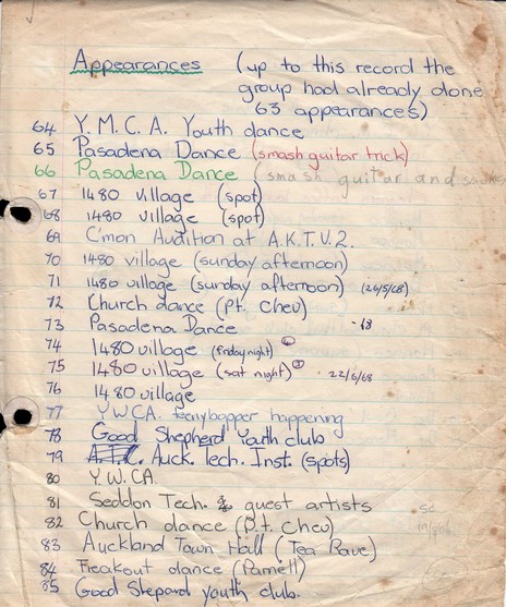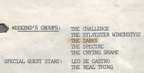 The 64th to 85th gigs The Zarks had performed up to mid-1968