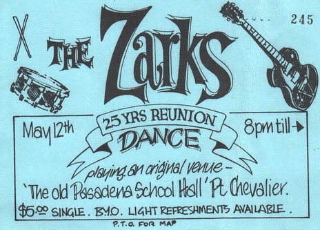 The flyer for The Zarks 25th anniversary reunion in 1990