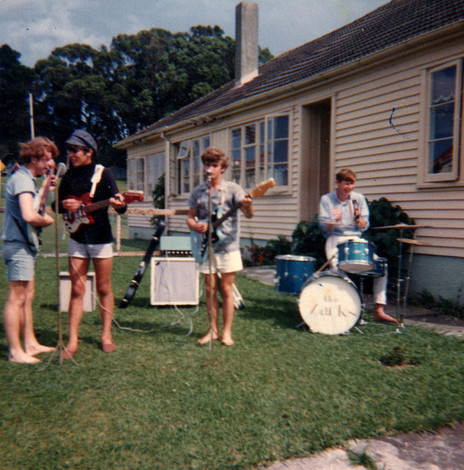 The Zarks in Moa Rd, Pt. Chevalier, Auckland, 1967: Tim Biggs, Denis "Tub" Winters, Terry Bradley, John Morrell, Larry Killip