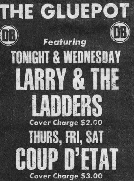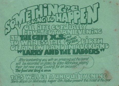 Larry and the Ladders' launch invitation at XS Café in Airdale Street. XS was co-owned by Bryan Staff who would release their debut single on his Ripper label.
