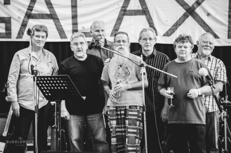 The Zarks/ Omnibus in 2013: Mike "Boogie" Harrison, Denis "Tub" Winters, Paddy Gibbons, Larry Killip, Terry Bradley, Tim Biggs and John Morrell