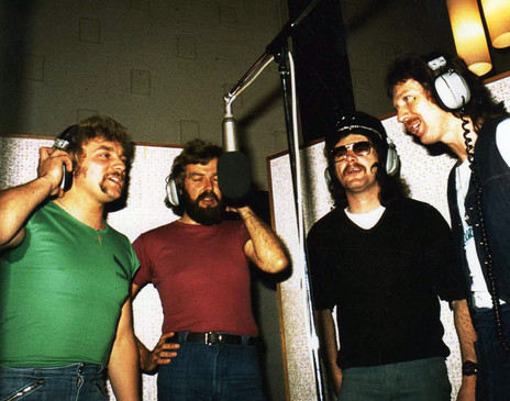 Salty Dogg's Mike Harvey, Vic Williams, Chris Gunn and Martin Winch recording at Auckland's Stebbing Studios