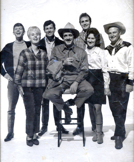 Cast of the TV show The Country Touch, late 1960s. Left to right, Paddy and Chris Lydon, Gray Bartlett, Tex Morton, Big Mike Durney, Val Proctor, Rusty Greaves.