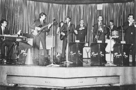 The Mike Perjanik Group at Sydney's Latin Quarter in 1967. On stage with the group is Allison Durbin and Tommy Adderley. Mike Perjanik produced both artists during his long career.