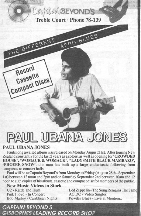 Paul Ubana Jones, whose career has been largely self-managed, has made sure that something is always happening. A New Zealand resident since 1987, Jones was one of Pagan Records' earliest signings (seven albums to date) and he has earned a reputation as a virtuoso guitarist and a solo performer. Although not an international star, Paul Ubana Jones has gained fans in parts of Australia, Europe and North America, and few performers have toured New Zealand so extensively.