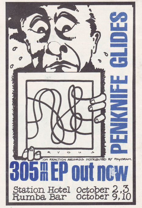 An advert for the second Penknife Glides EP, Nervous, released by Reaction in August 1981