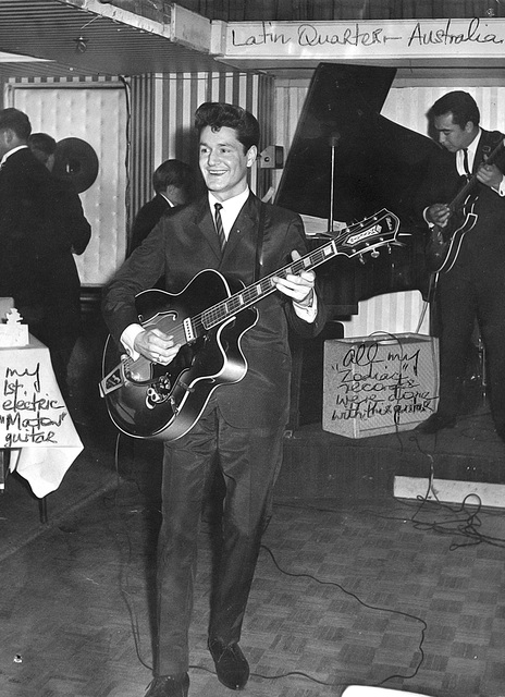 Posa’s debut album String Along With Peter Posa was released on Zodiac Records in September 1962. “Eldred and I worked really well together on the album. Because of my percussive style we only used drums on about four tracks.” A review in Playdate magazine in October 1962 said “The new Posa LP is a triumph for all concerned including Auckland electronics wizard Eldred Stebbing, who has dubbed the tapes one on top of the other in such a way that Peter sounds like the famous 76 trombones of The Music Man in guitars.”