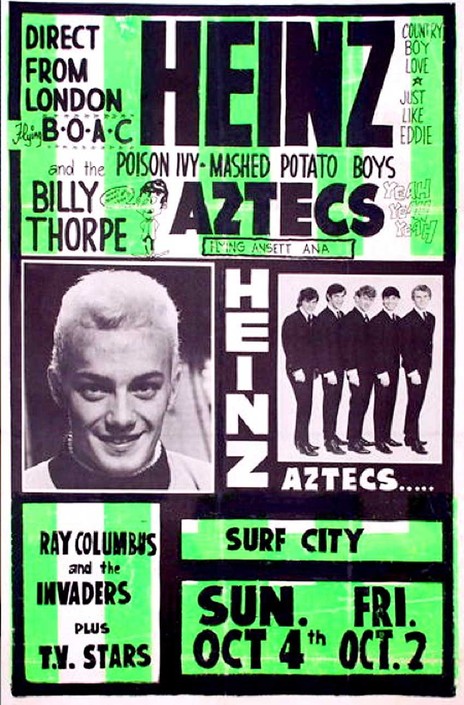 “After the Searchers, we went on the road for a six week tour co-headlining with Billy Thorpe and the Aztecs. We were sharing the billing and we were all good friends. We used to flat together. Their manager John [Surf City] Harrigan wanted to manage The Invaders. I refused to sign his contract and when we went to board this big DC6 in Perth he wouldn’t let us on the plane and said, ‘You’ve got no tickets!’ So Billy Kristian and Wally Scott, both being students of martial arts, started to pull some muscle and we got as far as Adelaide and we were stranded there. They left without us. After that incident I used to have a saying, ‘I won’t go to the toilet without return tickets’ because, I learned the hard way.”