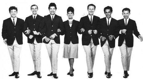 Miss NZ Tour 1965. From top left: Fred Whitaker, Sam Mateparae, Wez Taiaroa, Lou Clauson, Ian Saxon, Simon Mehana, Peter Posa. Middle: John Hore, Howard Morrison, Miss NZ 1965 Gay Phelps, Keri Northover. Front: Gary Wahrlich, Rim D. Paul.