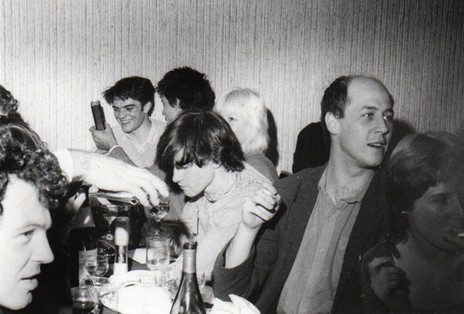 Don McGlashan, Paul Rose, The Newmatics' Syd Pasley, The Screaming Meemees' Tony Drumm, Syd's partner Angela, Simon Grigg and unknown, 1981. Taken at the NZ Music Awards, Logan Park, 1982, the year Grigg was given a special award for Outstanding Contribution to the New Music Industry.