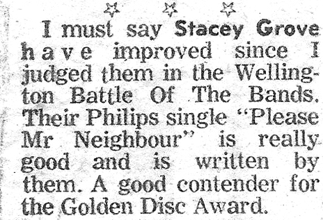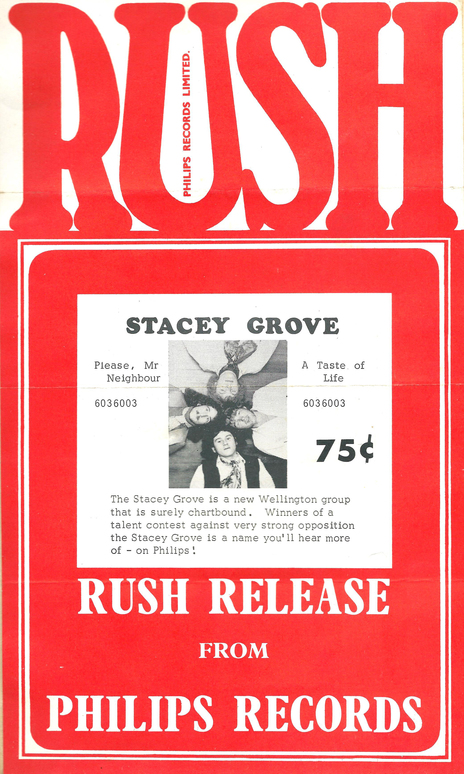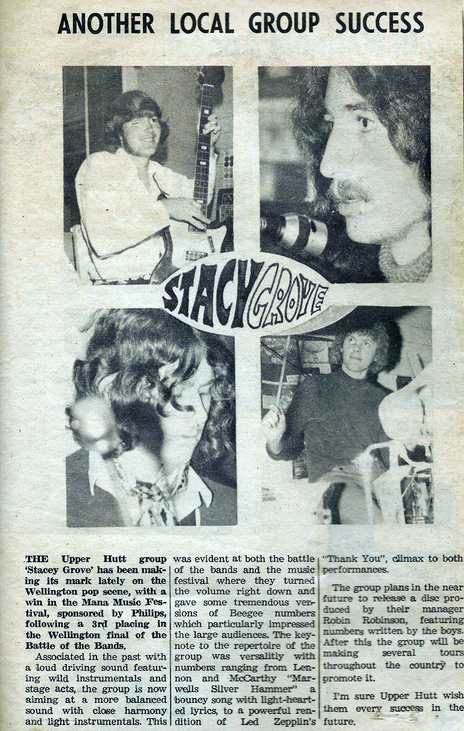As pop turned into rock in the late 60s teenagers the world over formed bands inspired by the new sounds coming from the UK and USA. Upper Hutt was a relatively isolated enclave and a fertile breeding ground for budding musicians. From 1967 to 1971 local band Stacey Grove tried their luck at finding stardom.