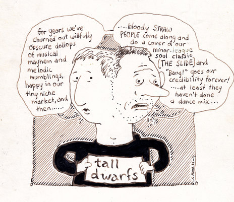 A wry hand drawn Chris Knox comment on Strawpeople's cover of the duo's The Slide, 1992