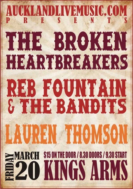 The Broken Heartbreakers, Reb Fountain & The Bandits and Lauren Thomson at Auckland's Kings Arms, March 2009