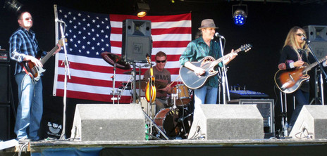 The Gypsy Pickers with Rob Johnson (bass) and Chris Pierson (drums) at the Rugby World Cup tailgate party for the USA team, Richmond Park Showgrounds, Nelson Bays, 2011.