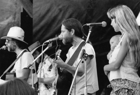 The Gypsy Pickers with John Hore Grenell at the Whitecliffs festival in the late 1980s. Lindy is holding the Valentes’ daughter Crystal.