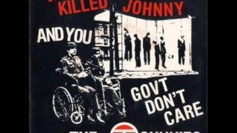 I snagged my copy of the single from Chelsea Records in Hamilton. It looked impressive in its printed red, white and black card cover with photos of a soldier in a wheelchair and seven hanging men; a pro job for a Kiwi punk act. The sound was basic simple-minded punk. ‘Govt Don’t Care’ entered with a crash chord, a heavier fuzz riff cutting in, followed by rumbling tribal drums and cavernous sound, and finally a weak vocal whine and hack class war lyric from Rick Tindall – “Hang the bourgeois …”