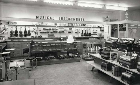 Begg's music shop, possibly in Dunedin c.1970